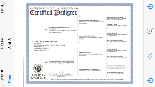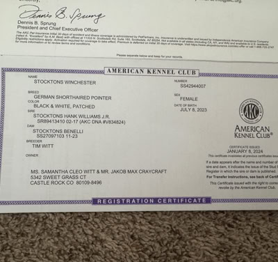 Dakota has a great personality, and loves to play with the kids! She has a great temperament, and easy to be with. Dakota and the kids love to go for runs and play fetch. Dakota has shown she is a great natural bird hunter, she has a nice point and retrieve. Dakota is a foot hunter (close to medium range). Dakota is a great all around dog!